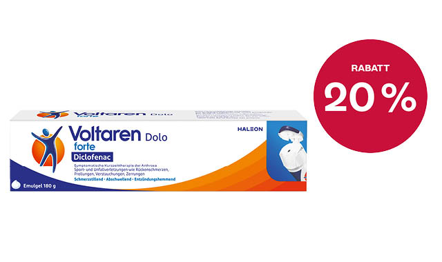 20 % Rabatt beim Kauf von Voltaren Dolo forte Emulgel oder Voltaren Dolo Patch.