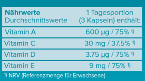 Nahrungsergänzungsmittel sind kein Ersatz für eine abwechslungsreiche Ernährung. Angegebene, empfohlene Tagesdosis nicht überschreiten.